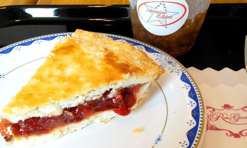 人気メニューの一つである「チェリーパイ」は、実は「ローズガーデン」も「アメリカンキッチン」も、全く同じもの。ホットコーヒーがおかわり自由なのも一緒ですし、メニューもよく見ると同じものが多いこの2つのお店。