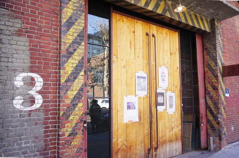 「聖水駅」から徒歩5分。通り沿いに工場地帯の名残を感じるレンガ造りの倉庫があります。ついつい通り過ぎてしまいそうだけど、ウェイウェイウェイ、その扉を開けてみて!! ここ、『大林倉庫ギャラリー CO:LUMN』には大スケールのカフェ空間が広がっているから!