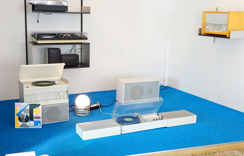 2階はアートポスターをディスプレーした空間。古いラジカセやスピーカーの機材も飾られていて、ポップでかわいい~!