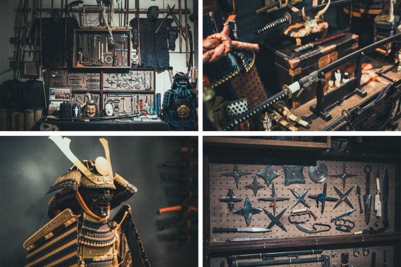 刀に鎧、忍具が飾られたこの場所は、江戸時代に徳川家に仕えた忍びの末裔、武蔵一族の拠点なのだと言う。ちなみに相模というのは忍者名で、自身が暮らす横浜の相模に由来しているそう。