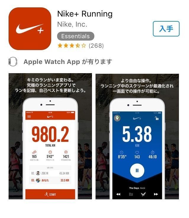 ランニングを記録するアプリとしては、知っている方も多いと思いますが「Nike+Runnig」(無料)がオススメ。ちなみにiPhoneを使用している方は、「ヘルスケア」アプリとデータの連携ができるので、「ヘルスケア」の歩数(スマホを持ち歩いていれば自動的に記録されている)を自動で反映して消費カロリーを計算してくれます。運動の記録をする必要がないのでかなりいいです。