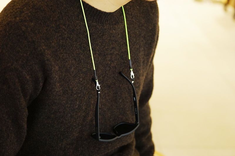 付属のゴムパーツに付け替えれば、メガネやサングラスのストラップとしても使用できる3WAY仕様。アジャスターが搭載されているので、ストラップの長さを自由に調整できるのもGOOD!