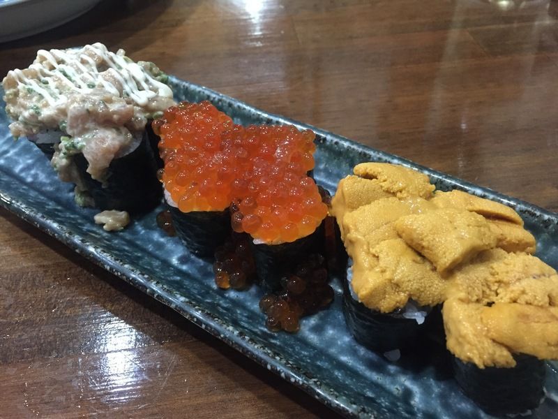 〆にはウニやいくらがこぼれ落ちた3種寿司もお忘れなく~!!