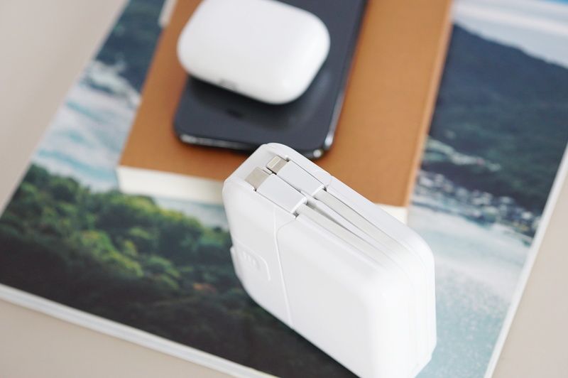 ケーブルが2本内蔵されているのも便利! ライトニングケーブルとType-cケーブルが搭載されているので、別途ケーブルをあれこれ持ち歩かなくてOK。「あれ、ケーブルはどこ? 忘れた!?」とバッグの中をガサゴソ探していたプチストレスから解放されました。