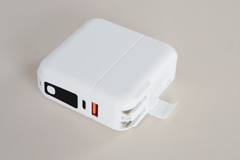 ACプラグ内蔵、Type-cケーブルとLightningケーブル内蔵、スマホスタンド付き、LCD残量表示、PD3.0の急速充電、15000mAhの大容量、コンパクトな設計…と、本当に至れり尽くせり。その分、ちょっと重たいかな!?と思う瞬間がありますが、便利な点を考えれば許容範囲。