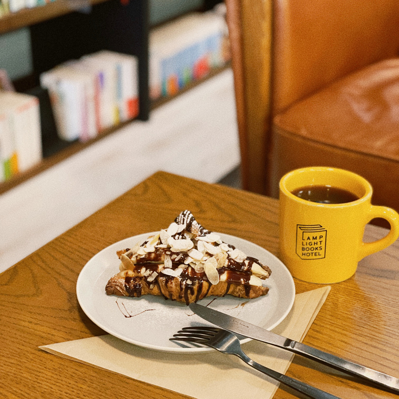 https://www.lamplightbookshotel.com/fukuoka/bookcafe/チョコバナナクロワッサンサンド 440円(税込)