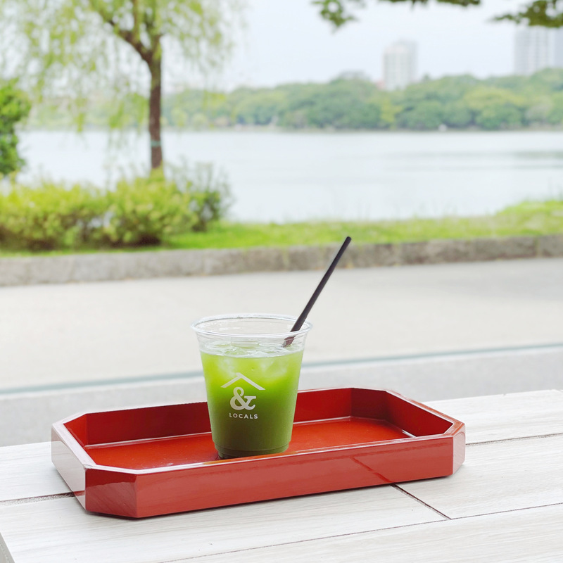 大濠公園の南側に建つ『大濠テラス』は、日本の伝統文化とその価値を発信するカフェスポット。1階にグロッサリー&カフェ『&LOCALS(アンド ローカル)』と着物レンタル『Yamato Tunagari gallery(やまと ツナガリ ギャラリー)』、2階にイベントスペースを併設しています。むしむしした日や暑い日は、さっぱりとクールダウンできる冷たい八女茶をどうぞ。「八女アンサンブリュー」は、“記憶に残るお茶”をテーマにした一杯で、複数の茶葉がブレンドされているので豊かな香りと深い旨味を味わえます。八女茶のおいしさを体感しながら、涼しげなグリーンにも癒やされてください。