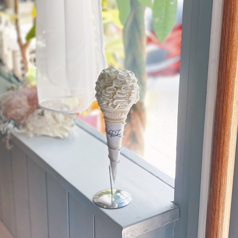 8月にオープンしたばかりの『TuTu(チュチュ)』は、フォトジェニックなソフトクリームとりんご飴が話題のカフェ。ひらひらとしたフリル状のソフトクリームは、まるでチュールスカートのように美しく、店名の由来もバレリーナのチュチュからとったそう。材料に糸島のミルククリームを使用しているので、コクが深くてとってもミルキー! 同じソフトクリームを使った「チュチュソフトプリン」(650円、税込)や「チュチュクリームソーダ」(600円、税込)も人気の一品。残暑でヘトヘトな日にもペロッといけるテイストです♪