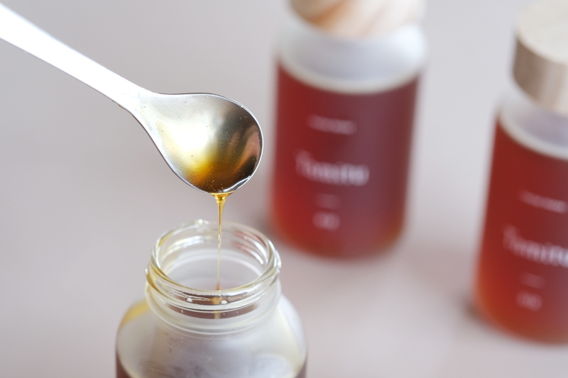 「618」は、抗酸化作用が高いマヌカハニーにエルダーフラワーやレモングラス、カルダモン、セージなどのハーブ&スパイスを調合したもの。喉の保湿として寝る前にそのまま舐めたり、厚切りトーストにかけたり、グリルチキンの隠し味に使ったりと、色々なパターンで取り入れています。