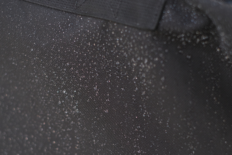 表面の撥水性も完璧。表面についた水滴を手でささっと振り落とせば、カラッと乾いた状態に元通り!