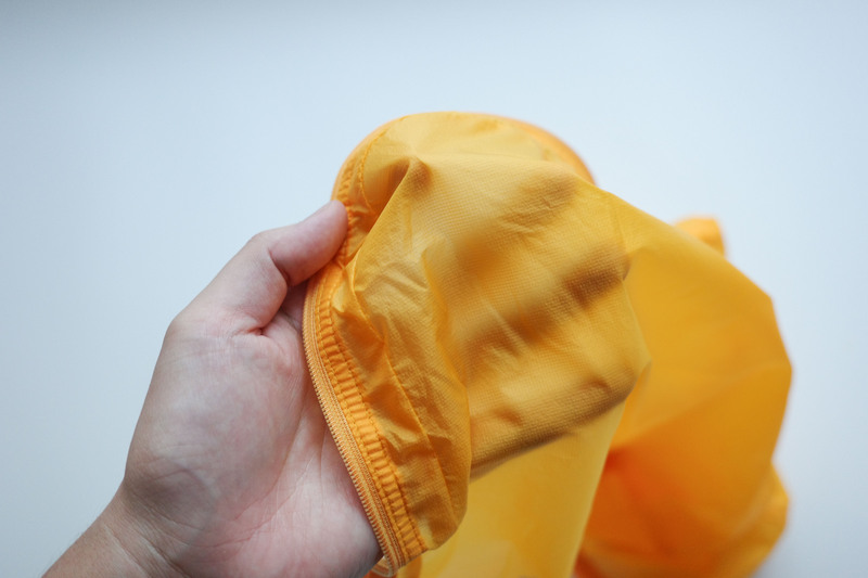 テロっとしつつも、しっかりしたナイロン製の生地でできており、軽量化された半透明な生地は、『髪の毛の1/3程しかない極細糸を、長年培ってきた技術で丁寧に織りあげた合繊生地ブランド「KAJIf」の中でも軽くて薄いオリジナル生地の「Humming bird(ハミングバード)」をさらに2/3ほどの重さまで軽量進化した生地「Humming bird AIR(ハミングバード エア)」を採用。』(商品サイトより抜粋)とのことで、本商品の機能性向上を実現しているみたいです。