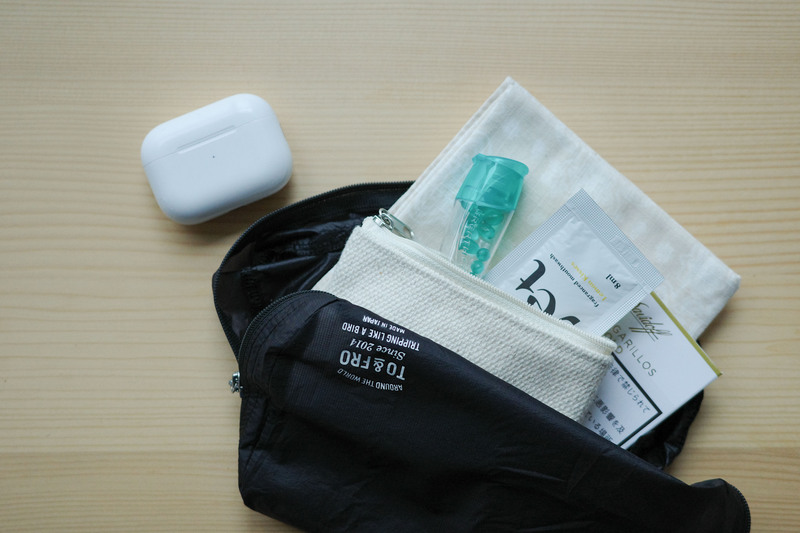 僕はXSサイズに、Airpodsや充電ケーブル、薬やリップなどのサニタリーグッズ、ハンカチなどを入れて、インナーバッグ的に日々使ってます。バックを変える際なども、ワンステップで入れ替えられるのも嬉しい(し、忘れ物減ります)。
