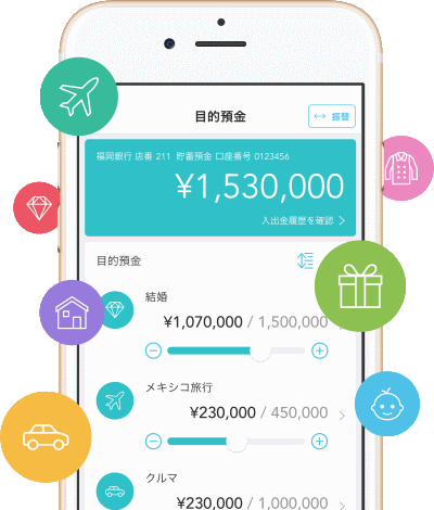 この機能を使えば、同じ口座内で、目的別に貯蓄ができます。たとえば「結婚式」のため、「車検費用」のため、「旅行費用」のため、「パートナーへのプレゼント」のためなど別項目で設定することができるのです。