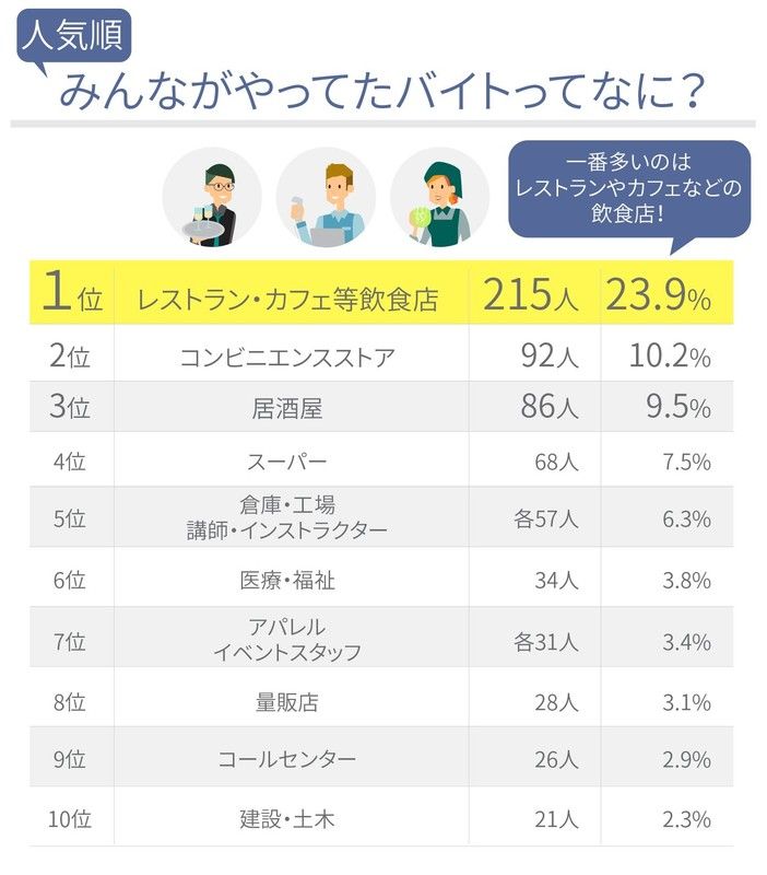 まず、みんながやっていたバイトを人気順で見ていきましょう。