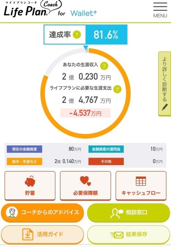 次にWallet+のライフプランコーチを使ってこれからのことをみてみましょう。