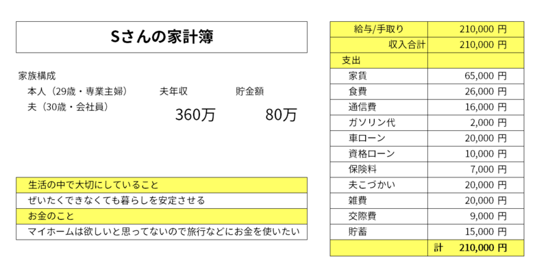 Sさんの家計をチェックしてみましょう
