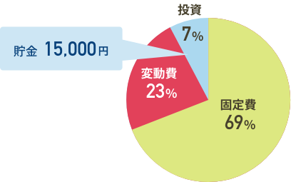 「投資」にあたる将来のためのお金は貯金1万5,000円、手取りの7%が将来につながるお金にあてられています。