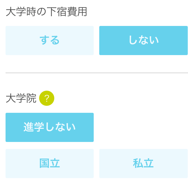 そこで詳細入力で、教育費のプランが大学の下宿費用を負担となっているところを自宅通学として下宿費用なしと入力
