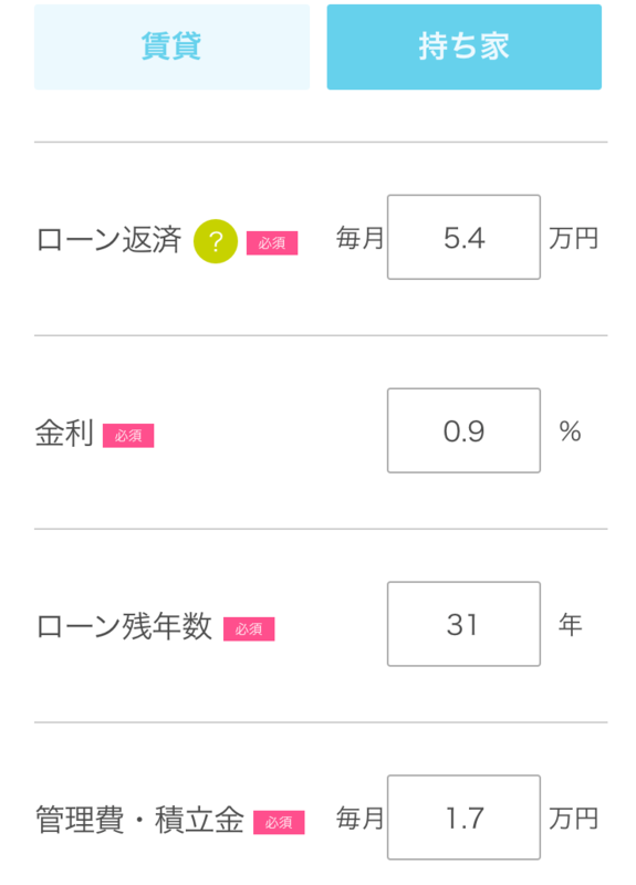 住まいの費用が賃貸となっているところを持ち家で実際の住宅ローンの金額を入力します