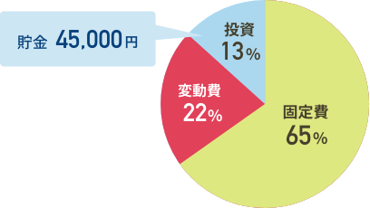 「投資」にあたる将来のためのお金は貯金3万円、資産形成のための保険1万5000円、合計4万5000円 手取りの13%が将来につながるお金にあてられています。