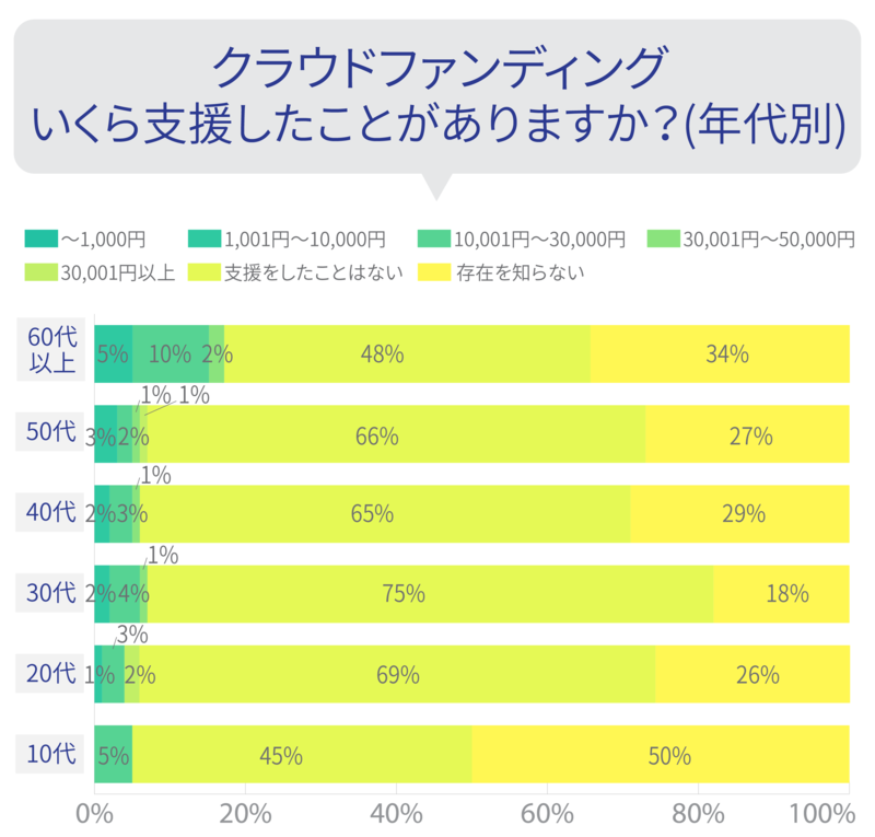 20代になると、クラウドファンディングのことは知っているものの、支援はしたことがない方が増えます。