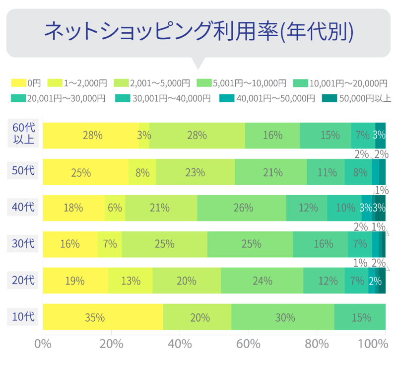 利用金額については、40代までは、「5,000~10,000円」が最も多くなっています。