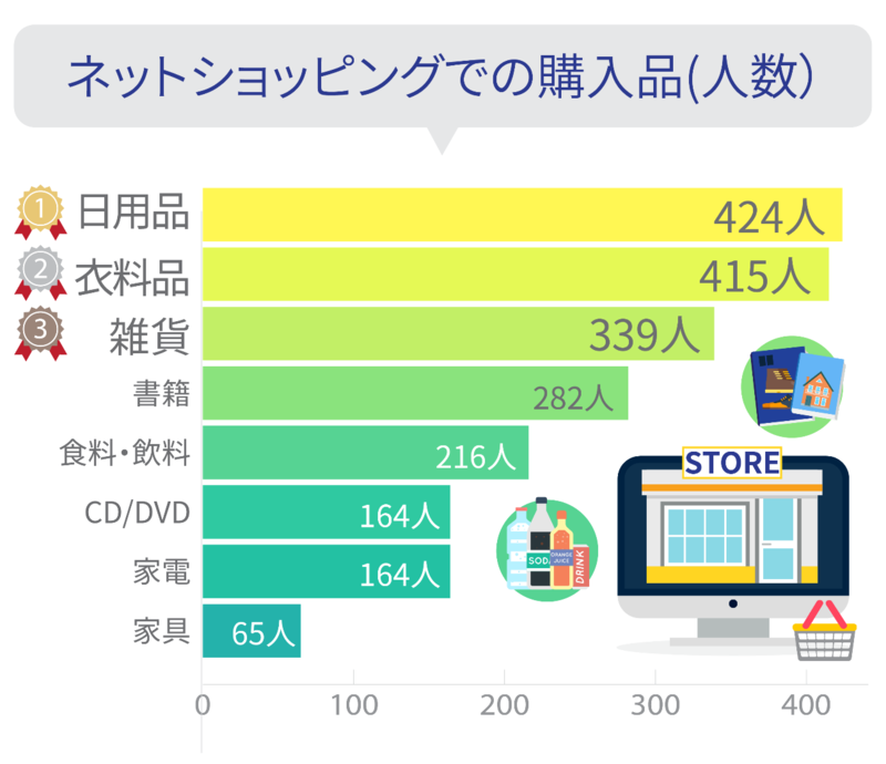 日用品や雑貨、書籍等は、Amazonや楽天等を利用されている方が多いので、このあたりで購入されているのでしょうか。特に、日常的に同じ商品を利用している場合は、ネットの方が便利ですよね。