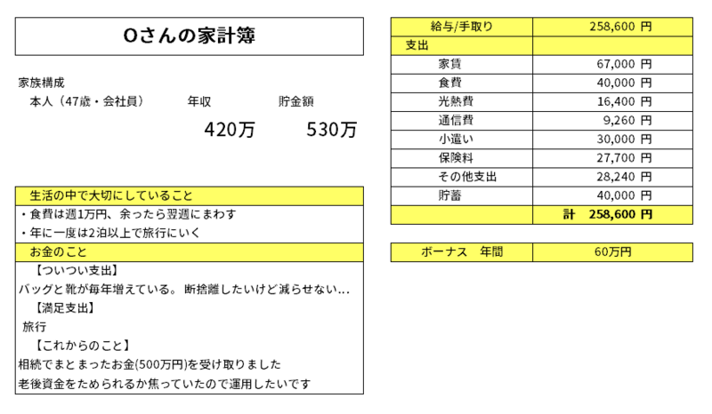 40代独身Oさんの家計簿診断を終えて