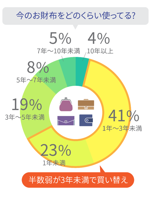 まず、今のお財布をどのくらい使っているのか、おたずねしました。
