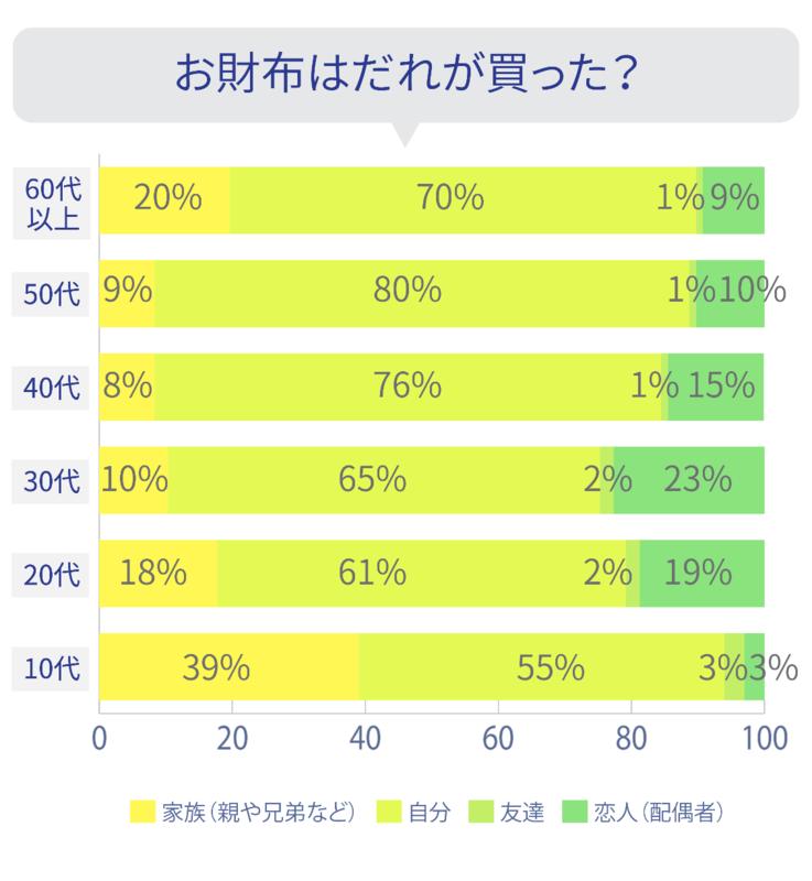 次に、お財布は誰が買ったのか、年代別に見てみましょう。