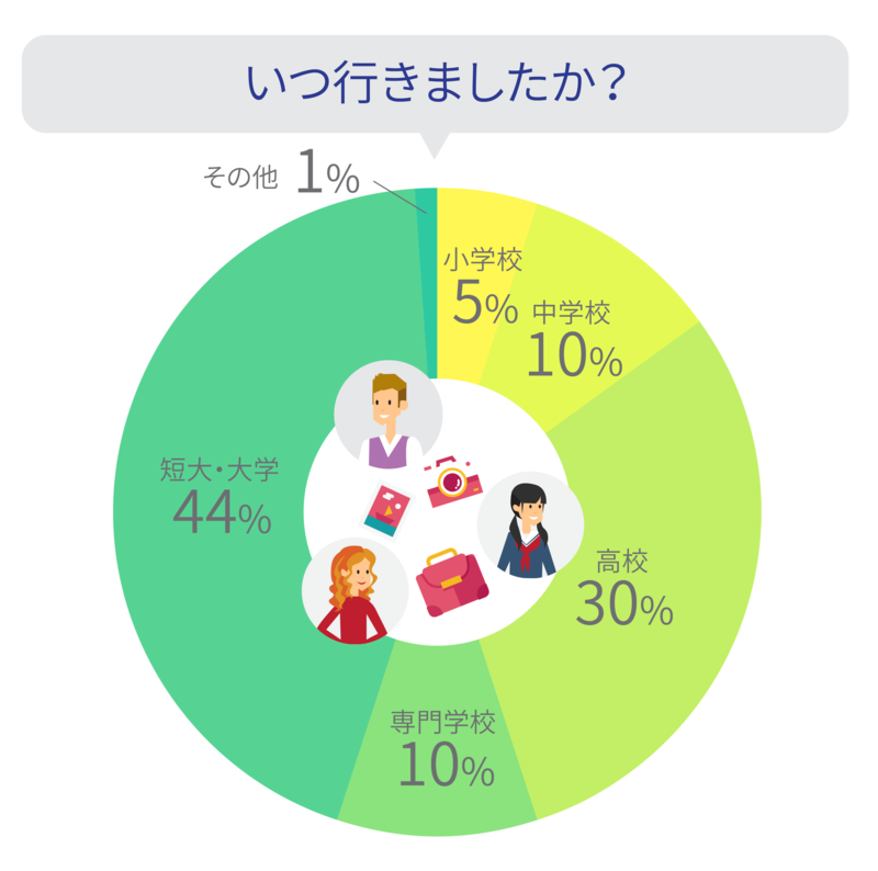 やはり、「短大・大学」が44%とトップ。次に、「高校」で30%でした。