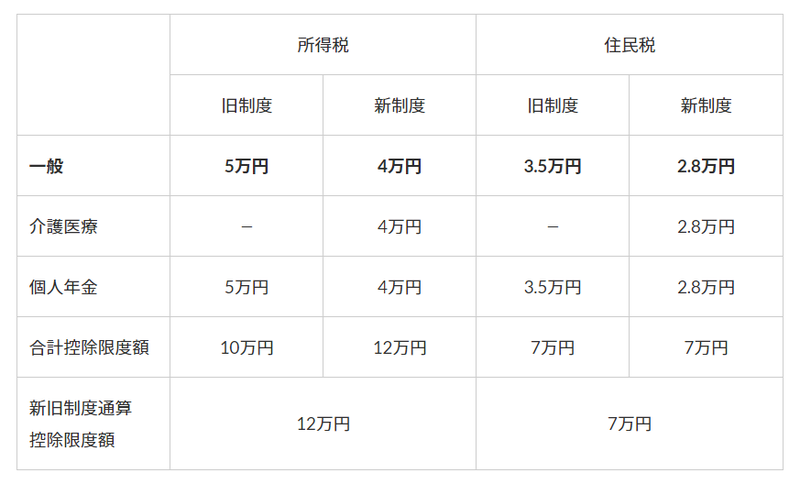 生命保険料控除は平成23年前とそれ以降の契約で控除額が異なります。旧制度(平成23年まで)は年間保険料10万円超、新制度(平成24年以降)は年間保険料8万円超で以下の金額が控除(上限額)できます。
