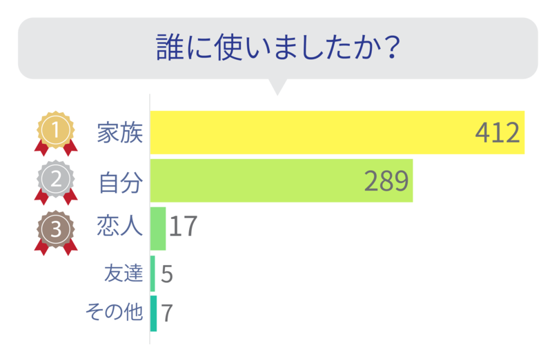 先の設問で、「プレゼント」が1位になりましたが、その多くはご家族へのプレゼントだったのですね。みなさん、ご家族思いです!