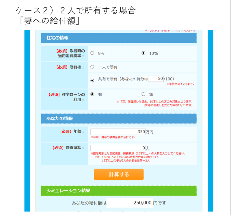 給付額は申請者の所得や扶養等の状況によって異なります。自身の給付額を知りたい場合は、すまい給付金HPのシミュレーションを参考にするといいですよ。