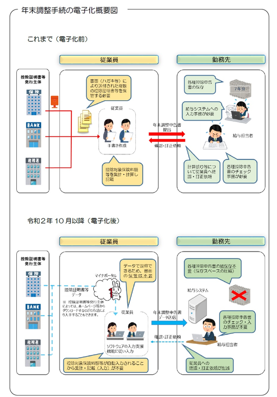 これまで書類回収後は、「記入内容に誤りはないか」「添付書類が提出されているか」「控除額の計算は正しく計算されているか」などの突合作業が必要となり、不備があれば差し戻して再度回収するという手間がありましたが、今後はその手間がなくなります。