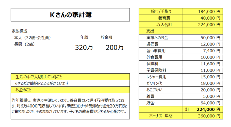 32歳Kさんの家計簿は・・・?