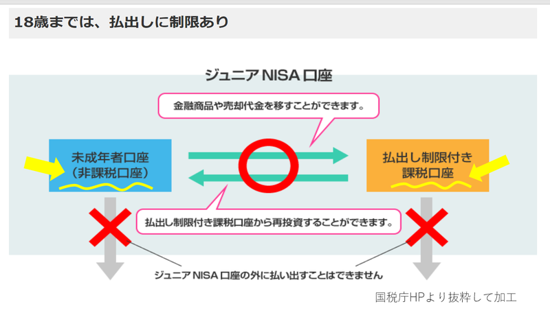 言いかえると、ジュニアNISA口座内から18歳までお金は引き出せません(現金は受け取れません)が、ジュニアNISA口座の中で売買を繰り返すことは可能です。 ですので、A社株を売却した後に、B社株に投資をしたいと思った場合は、その売却資金を使ってB社株に投資をするということもできるわけです。