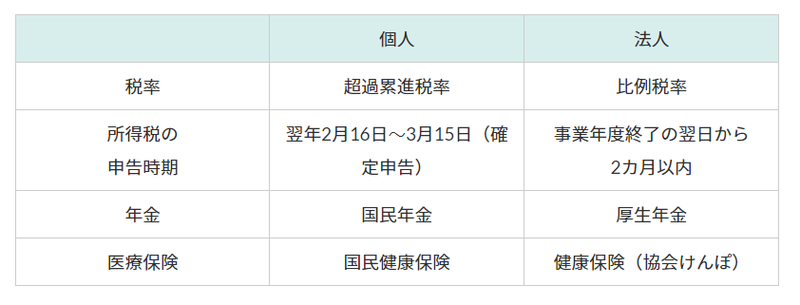 <個人事業主と法人の主な違い>