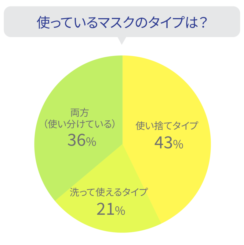 「使い捨て」タイプの利用者は43%、「洗って繰り返し使える」タイプの利用者は21%、という結果でした。