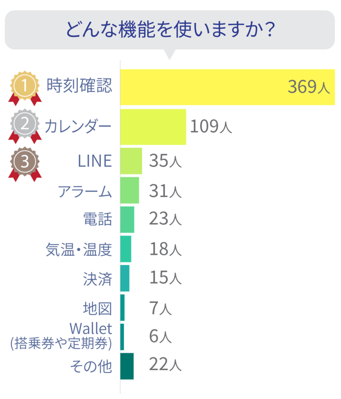 時刻確認以外では、「カレンダー」機能がトップです。