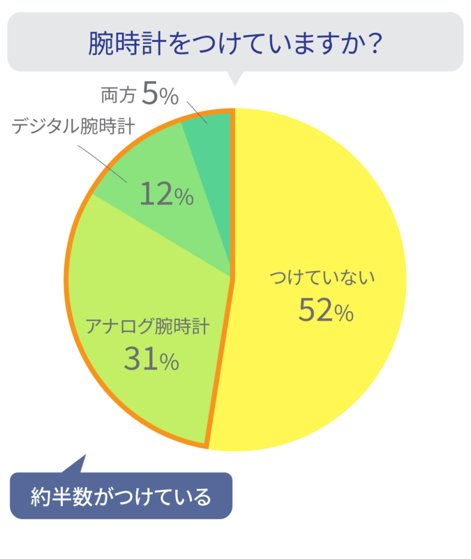 今回の調査では、腕時計をつける派とつけない派が、半々に分かれました。
