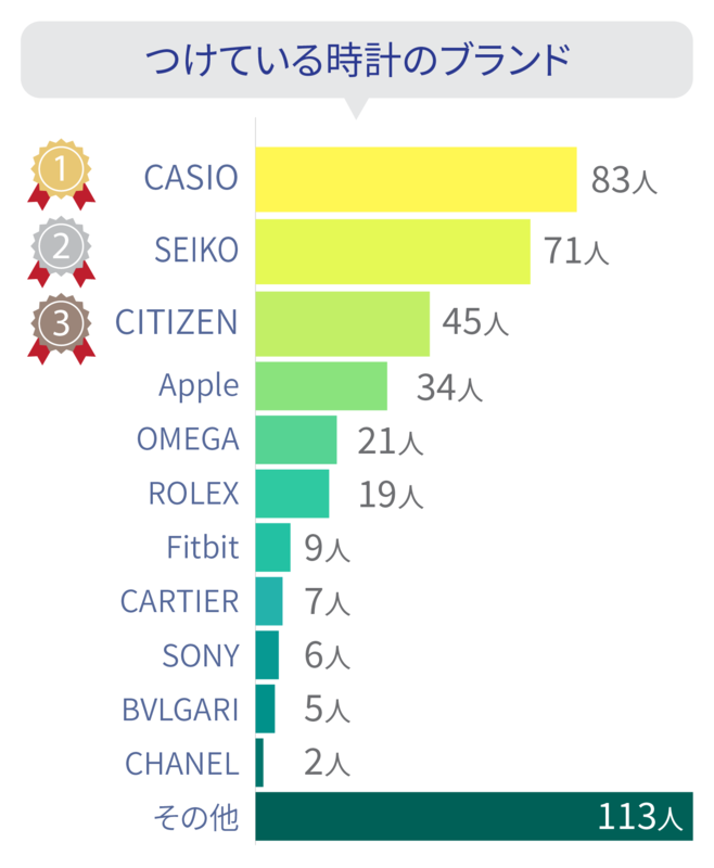 今回提示した選択肢の中では、1位が「CASIO」、2位が「SEIKO」、3位が「CITIZEN」、という結果になりました。
