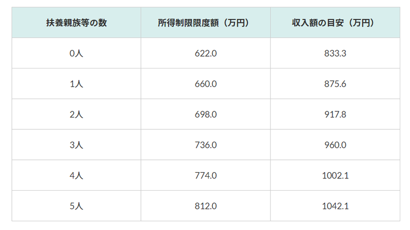 1.所得税法に規定する老人控除対象配偶者または老人扶養親族がいる方の限度額(所得額ベース)は、上記の額に当該老人控除対象配偶者または老人扶養親族1人につき6万円を加算した額。