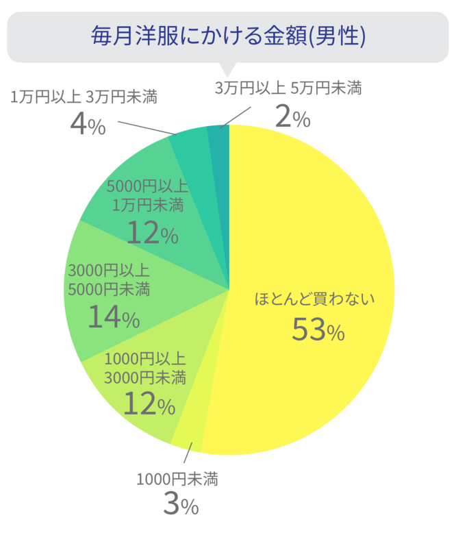 毎月洋服を「ほとんど買わない」と回答した方は、男性が半数以上に対し、女性は約3割と、男性はあまり洋服を購入していないことが分かりました。