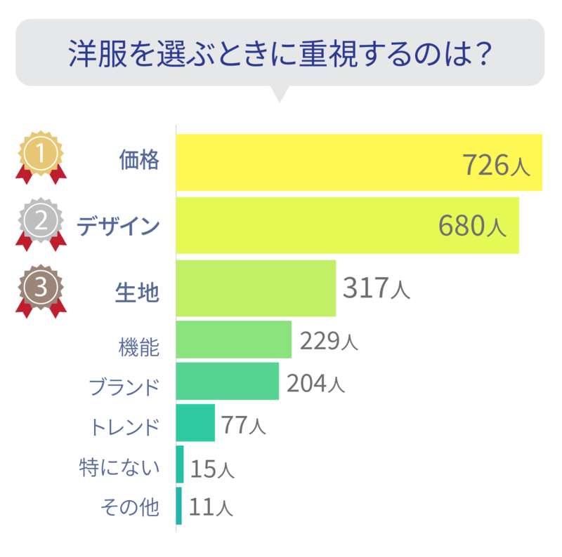 今回の調査では、他の項目と比べると「トレンド」や「ブランド」は、あまり重視されていませんでした。