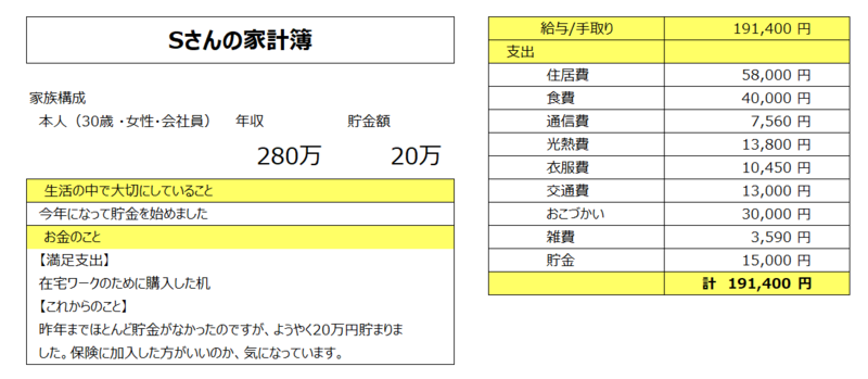 Sさんの家計簿は・・・?