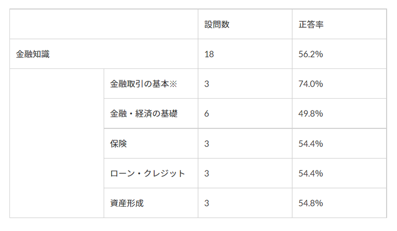 金融知識に関する正答率