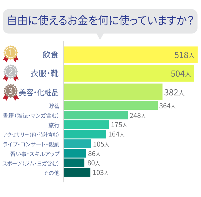 1位は「飲食」、2位は「衣服・靴」、3位は「美容・化粧品」、4位は「貯蓄」、