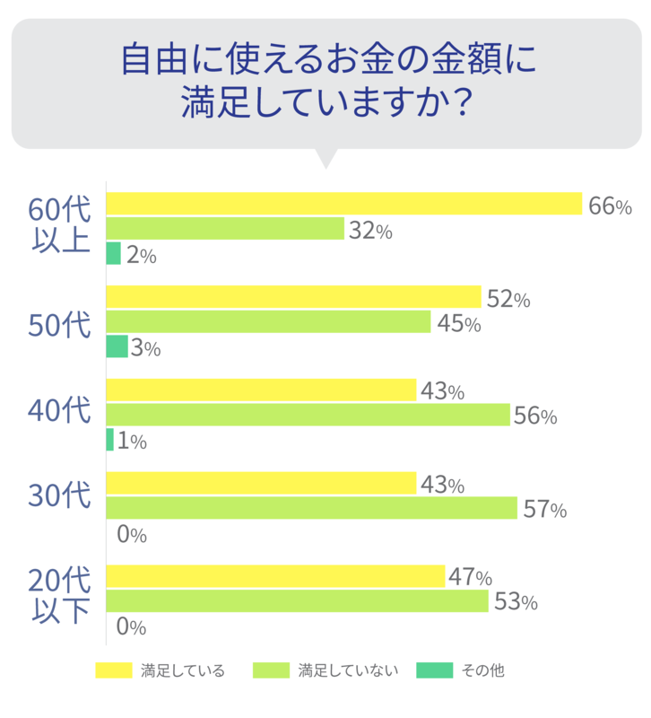最後に、自由に使える金額について満足しているか、おたずねしました。