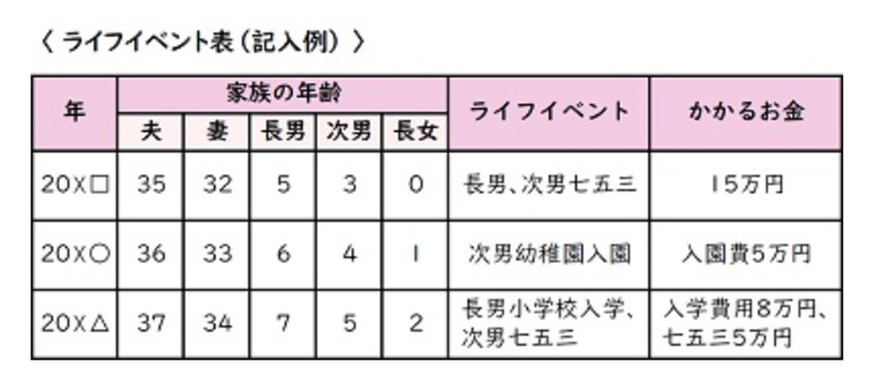ライフイベント表の作成